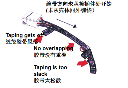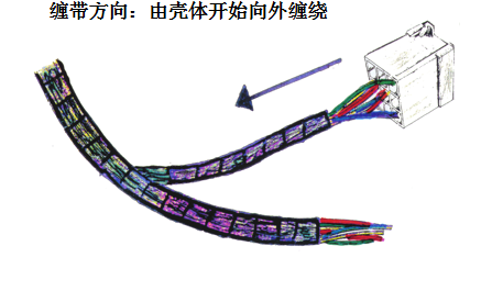 膠帶點(diǎn)纏是指使用膠帶在線束上的同一位置裹纏至少三圈。